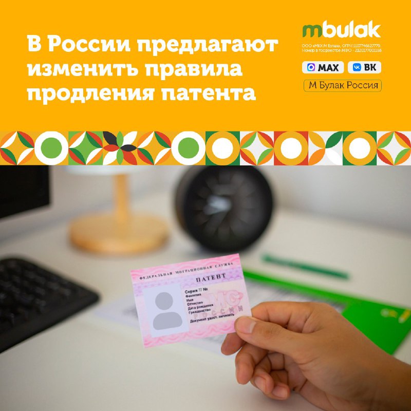 🇷🇺💳В России предлагают изменить правила продления патента 📌В России внесён в Госдуму законопроект, меняющий порядок продления трудовых патентов для иностранных граждан. 📝Предлагается учитывать