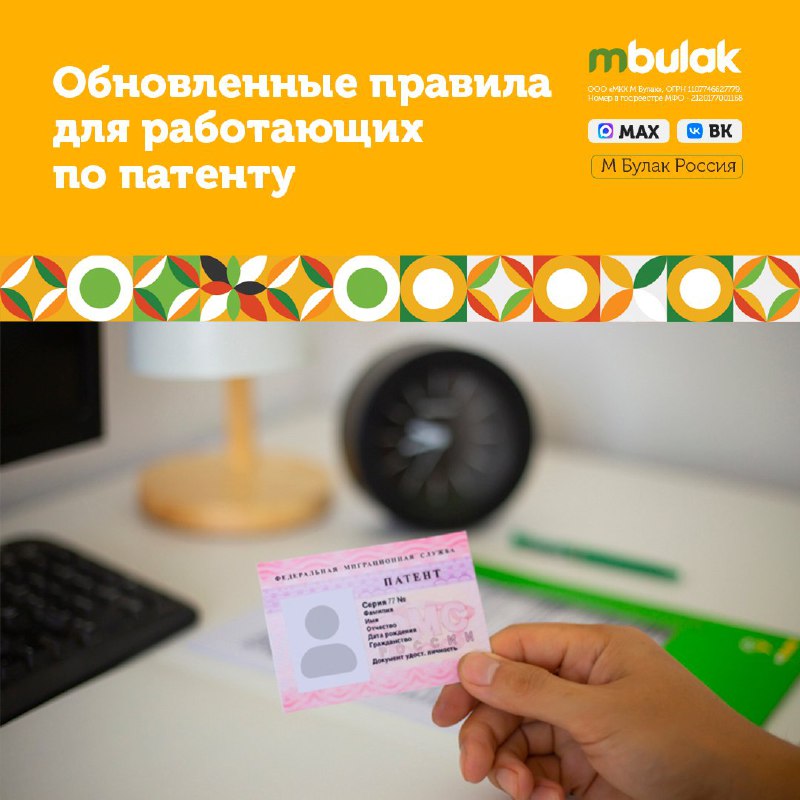 💳📆Обновленные правила для работающих по патенту ✅С 2026 года в Московской области действуют обновлённые правила для иностранных граждан, работающих по патенту. Согласно новым требованиям, для трудо