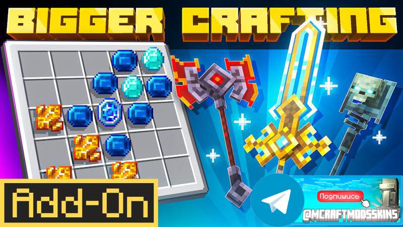 Bigger Crafting 🌼🌼🌼🌼🌼🌼🗡 🌼🌼🌼🌼🌼🌼🌼🌼 Расширьте свои горизонты с помощью БОЛЬШОГО СТОЛА ДЛЯ ТВОРЧЕСТВА! Откройте сетку 5x5, заполненную новыми рецептами. Создавайте эпическое оружие, магичес