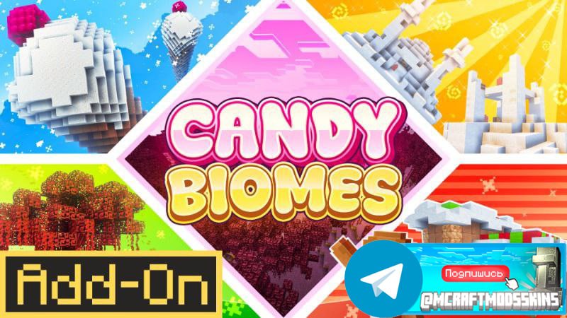 Candy Biomes 🔠🔠🔠🔠🔠🍬 🫐🍇🍇🍓🫐🍓 Окунитесь в волшебный мир Конфетных Биомов. Исследуйте новые постройки, торгуйте с местными жителями и пробуйте новые блюда! Сражайтесь с монстрами, похожими на