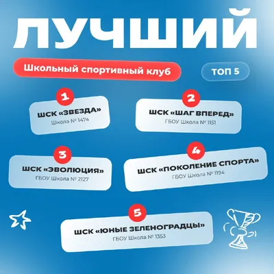 🔝Промежуточные итоги конкурса «Лучший спортивный клуб в системе московского образования» Конкурс на лучший СК идёт полным ходом, и все мы хотим знать, кто же вырывается вперёд. В карточках — топ-5 к
