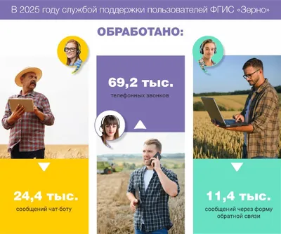 🧑💻Мы продолжаем круглосуточно поддерживать пользователей ФГИС «Зерно». Для этого в «Центре Агроаналитики» днем и ночью работает огромная команда специалистов по всей стране. 📞В 2025 году мы обра