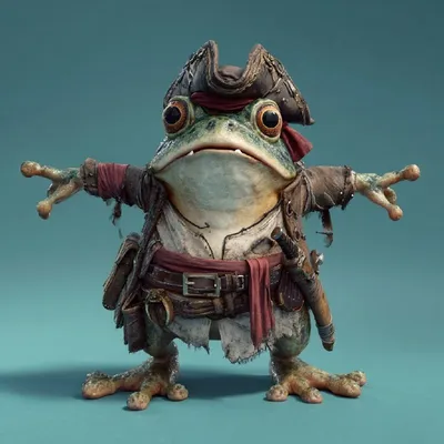 Лягушонок-пират, Толстяк, Коренастый, Неряшливый, Ленивый, с неправильным прикусом, низкополигональный, поза Т, ортогональный вид 🐳 MDJ School 🐳