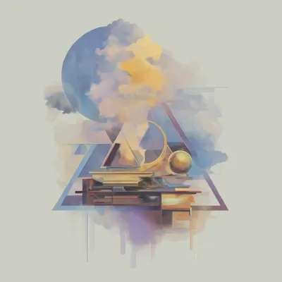 Логотип цифровой академии в пастельных тонах, где символы знаний и технологий сливаются воедино, словно на сюрреалистической картине маслом 🐳 MDJ School | Канал в Мах 🐳