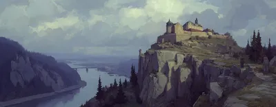 Эпическая панорама от Грега Рутковски. Масштабная возвышенная сцена с крепостью Эренбрайтштайн на восточном берегу Рейна, напротив устья Мозеля, с видом на город Кобленц. На горизонте виднеются прусск