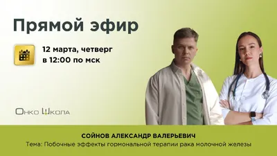 #эфир ТЕМА: Побочные эффекты гормональной терапии рака молочной железы 📅 12 марта, четверг 🕐 12:00 (МСК) Прямо здесь, в нашем канале Ссылку на трансляцию разместим за час до начала Эксперт эфира