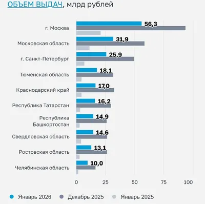 Доля ипотеки просела Доля ипотеки в новых кредитах просела почти на треть, но рынок не умер — он остывает после льготного безумия и высоких ставок. В январе доля ипотеки в выдачах упала с 31,7% до 2