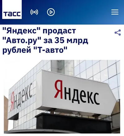 Яндекс продаёт Авто.ру за ₽35 миллиардов Покупателем станет Т-Авто (Т-Технологии), а сделку закроют во втором квартале 2026 года. В 2014 году Яндекс покупал Авто.ру за $175 миллионов — примерно ₽7