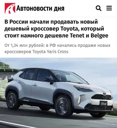 💵 В России начали предлагать Toyota Yaris Cross по цене Lada Vesta И это по цене от ₽1,34 миллиона. За эти деньги покупатель получает базовый набор: однозонный климат, мульти-руль, подогрев передних