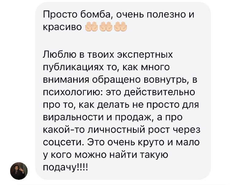 Обратная связь по статье в самое ❤️ Знаю, что не все разделяют подход: сначала внутреннее -> потом внешнее, но я вижу именно в нем самую большую силу (и транслирую это вам)