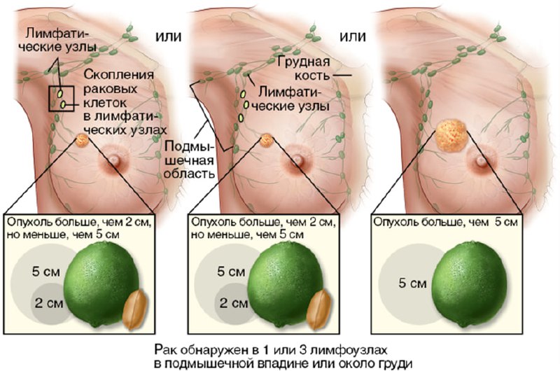 Инфильтративный рак молочной железы. Стадия IIIA — T0N2M0, T1N2M0, T2N2M0, T3N2M0