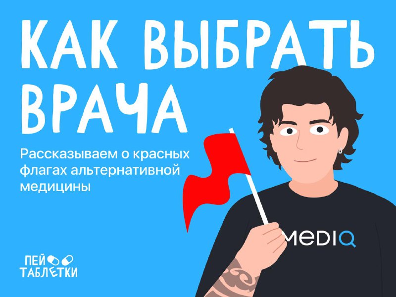 Красные флаги во врачах: как не попасть к альтернативщику 🚩 Всем привет! На связи Женя Коровин — основатель MedIQ и «Пей таблетки!». Недавно мы вместе с медицинским журналистом Ольгой Кашубиной встр