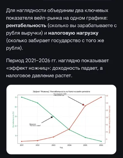Почему графики пересеклись? Акцизный «пузырь»: К 2025–2026 годам акциз на жидкости (42–49 руб./мл) стал составлять до 50–60% от себестоимостифлакона. Ритейлер вынужден платить налог авансом, заморажив