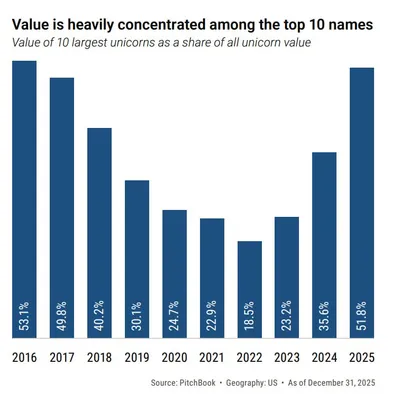 Новый отчет Pitchbook об оценках компаний — должно бы быть интересно, но они слишком на единороги упирают, полезного там мало. Но есть любопытное, два графика копирую. На первом напоминание, что 10