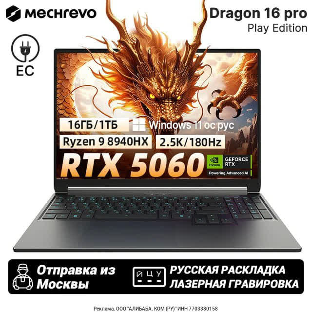 Игровой ноутбук MECHREVO 16Pro, 16", 16ГБ/1ТБ, R9 8940HX, RTX 5060, Windows Скидка-50% Цена с купоном продавца: 99512 руб. Экспресс-доставка без пошлины. https://ali.click/q9a611m?erid=2SDnjduVkuP 👉
