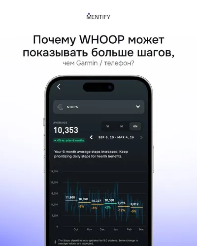 Насущный вопрос — почему WHOOP может показывать больше шагов, чем Garmin / телефон? ⌚️ Многие замечают: WHOOP может давать на ~30% больше шагов, чем другие устройства. Это не баг, а разница в том, чт