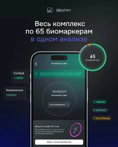 Мы знаем, что вы хотели сдать анализы крови для Advanced Labs за раз 💉 — теперь можно сдать один комплекс анализов сразу по 65 биомаркерам с клиникой LabRehab и загрузить результаты в Whoop Advanced
