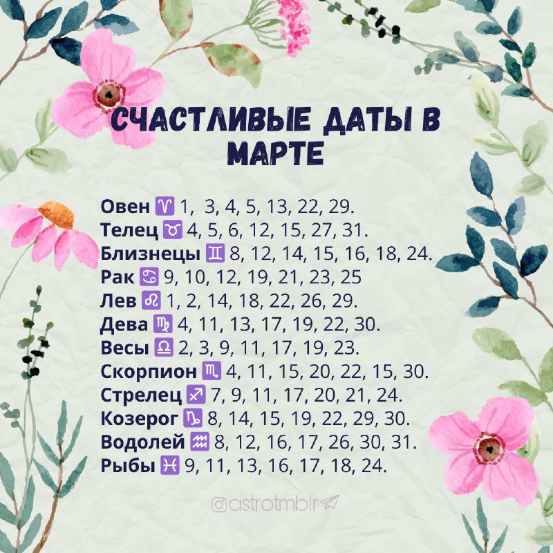 Счастливые даты в марте подъехали! 🌸 ❤️❤️ Жми на ❤️чтобы март был удачным! 👉🏼 Гороскоп +18. Подписаться