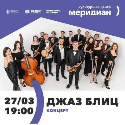 🎷 Приглашаем на яркий музыкальный вечер – концерт "Джаз Блиц" 27 марта на главной сцене "Меридиана" с участием двух выдающихся джазовых коллективов и звёзд российской эстрады. "Джаз Блиц" – это энер