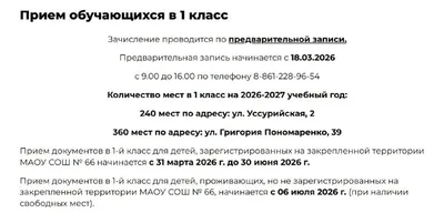Внимание! 66 школа открыла предварительную запись на прием обучающихся в 1 класс!