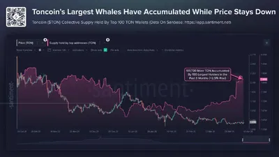 🗣Santiment сообщает об активизации крупных инвесторов в экосистеме TON: за последние три месяца 100 крупнейших держателей активов накопили 189 730 TON.