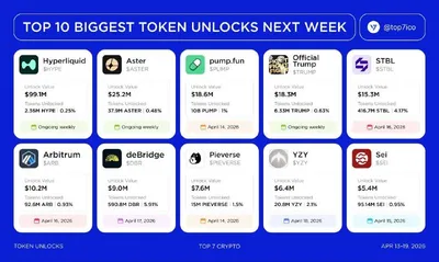🖥 Предстоящие разблокировки токенов. На следующей неделе будут разблокированы активы на более $280 млн.