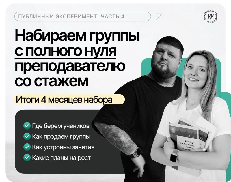 11 лет опыта, три диплома, 0 опыта ведения групп... и что в итоге? 4 месяца назад я запустил публичный эксперимент. На ваших глазах с нуля начал выстраивать систему с большими группами у преподавате