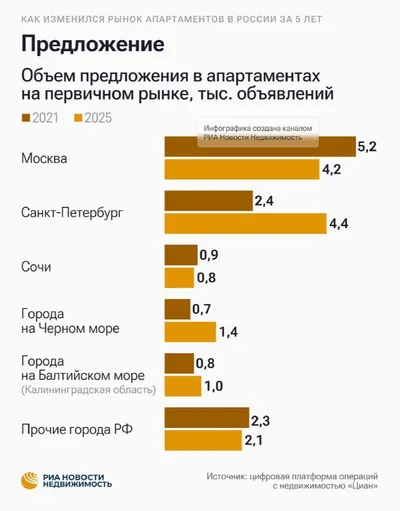 🤩 Цены на апартаменты в новостройках Москвы остаются на уровне 2021 года — около 411 тыс. рублей за квадратный метр. За пять лет рост составил лишь 3,3%, тогда как в Санкт-Петербурге цены выросли в 1