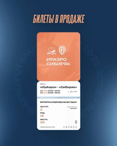 Билеты на матчи ИРАЭРО х СИБИРЯК в продаже 🎫 Ближайший тур проведем на выезде, а уже на следующей неделе снова увидимся на домашних трибунах. Обращаем ваше внимание на даты матчей: 22 марта в 14