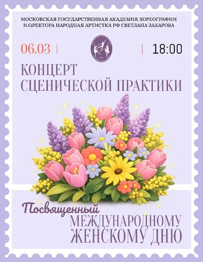 🌸 Встречаем наступившую весну праздничным концертом сценической практики, посвященным Международному женскому дню! В этот вечер для вас выступят наши учащиеся и студенты — от самых юных артистов, ко