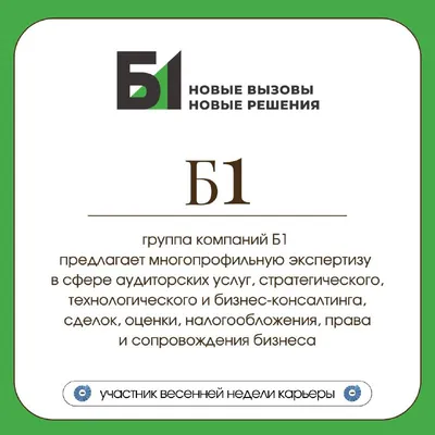 🔔 Продолжаем знакомиться с участниками весенней Недели карьеры! 💚 Сегодня — Б1! _________ #ЦК_CareerWeek #Участник_CareerWeek