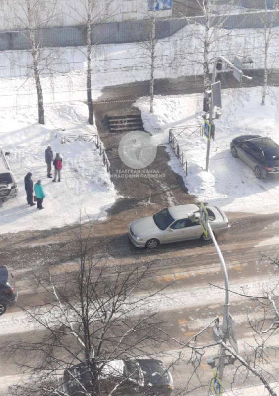 ‼️ Проезжая часть проспекта Макеева в районе пожара превращается в каток из-за стекающей воды. Водителям и пешеходам следует быть предельно внимательными! 😀 Подписаться | Прислать новость