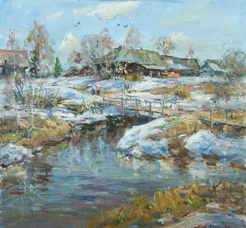 Потекло. От солнечной эмали Заслезился белый окоём. Слава Богу, перезимовали! Не замёрзли - значит, поживём. Солнце, как подпрыгнув на ухабе, Выплеснулось. Облачка - тонки. Полились по лужам и
