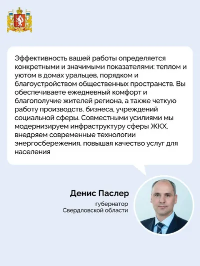 💬 Денис Паслер поздравил работников бытового обслуживания и ЖКХ с профессиональным праздником. 🌇 На сегодняшний день в Свердловской области — более 14 тысяч объектов бытового обслуживания. Специали