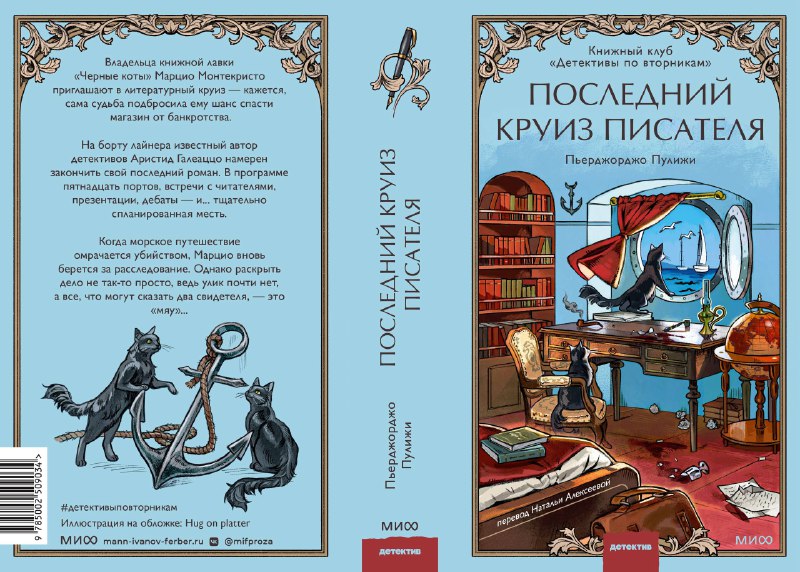 Отправили в печать «Последний круиз писателя. Книжный клуб “Детективы по вторникам“» с обложкой от Hug on platter🩵 Продолжение итальянского бестселлера о книгах, котах и людях, которые слишком любят
