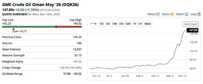 Цены на ближневосточную нефть летят в космос Цены на оманскую нефть поднялись примерно до 147 долларов за баррель, а кувейтская экспортная смесь достигла около 143 долларов, показав рост более чем на