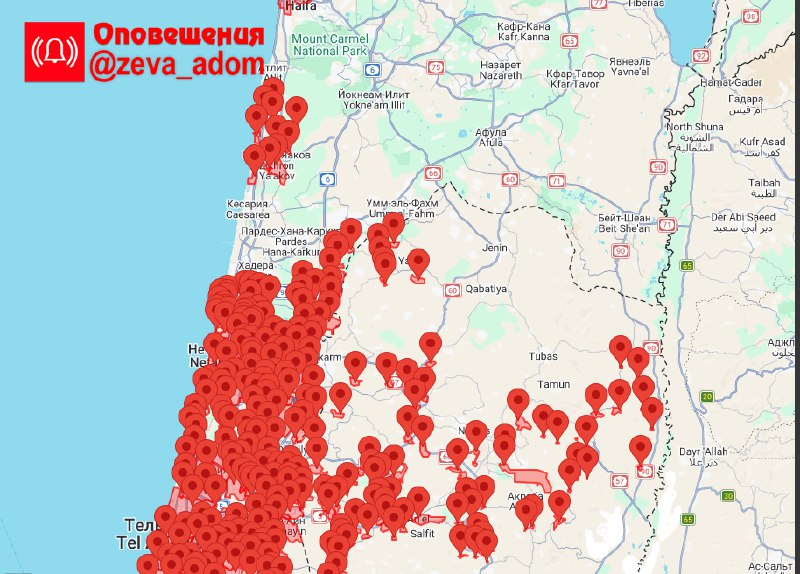 Ракетный обстрел (04:13) • Дан • Шарон • Яркон • Неизвестный регион • Самария • Вади Ара • Ха-Мифрац • Шфела • Иорданская долина • Менаше • Ха-Кармель 🚨 Оповещения Цева Адом