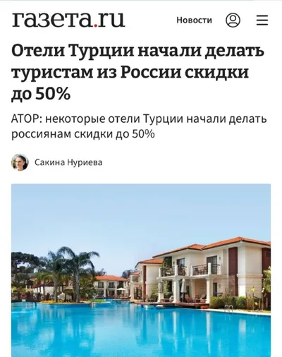 🇹🇷Туристам из России стали предлагать скидки до 50% на отели в Турции, — АТОР Причина в том, что европейцы стали гораздо реже ездить в Турцию на фоне конфликта на Ближнем Востоке. В итоге свободны