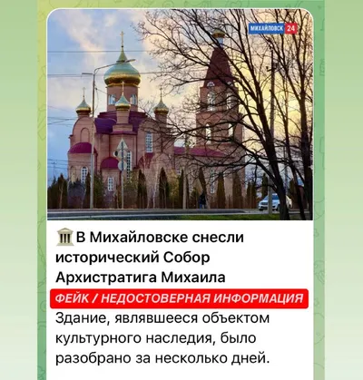 ⚠️ Внимание, фейковая информация Друзья, нам сообщили, что в одной из групп распространяется публикация с нашей фотографией Собора Архистратига Михаила в Михайловске, но с полностью изменённым и недо