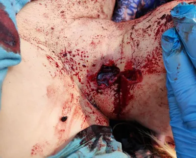 Гражданский. Женщина. Осколочное ранение в шею и подбородок. @mil_med