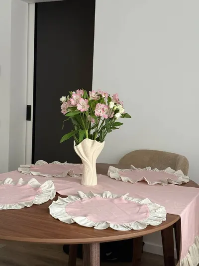 Декор стола Скатерть-дорожка на стол- хлопковая скатерть с рюшами, смотрится очень нежно и уютно) Салфетки- идут в тон под скатерть, красивое дополнение к сервировке #для_дома