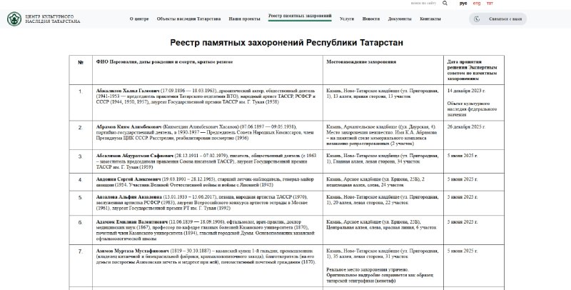 В Татарстане появился уникальный реестр захоронений выдающихся личностей В Татарстане создан Республиканский реестр памятных захоронений выдающихся личностей. Подобный проект появился в отечественной