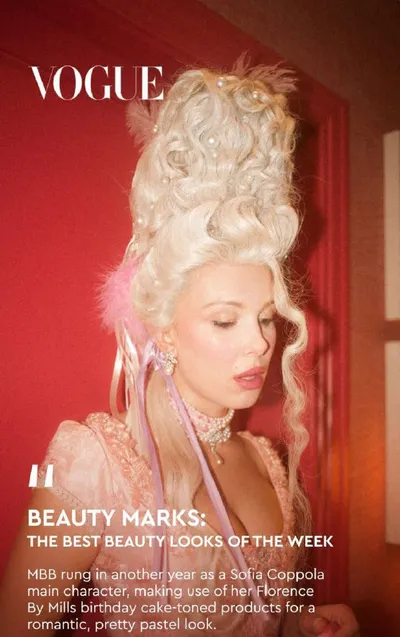 Лучшие бьюти-образы недели: МББ отметила ещё один год, вдохновившись главной героиней фильма Софии Копполы. Она использовала свою косметику Florence by Mills в пастельных оттенках, напоминающих празд