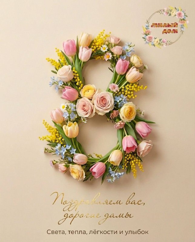 🌸Дорогие дамы! 🌸 Сеть магазинов «Милый дом» поздравляет вас с прекрасным весенним праздником — 8 Марта! Пусть в вашей жизни всегда будет много света, тепла и уюта. Пусть каждый день приносит радос