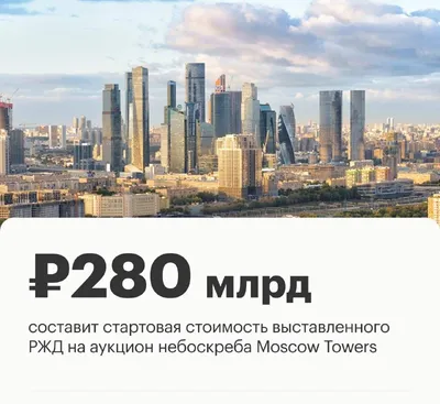 ⚡Госкомпания продаёт небоскрёб за ₽280 млрд. РЖД выставили на торги башню Moscow Towers в «Москва-Сити». На продажу — около 242 тыс. кв. м офисов, апартаментов и парковок. Стартовая цена — ₽280,8 млр