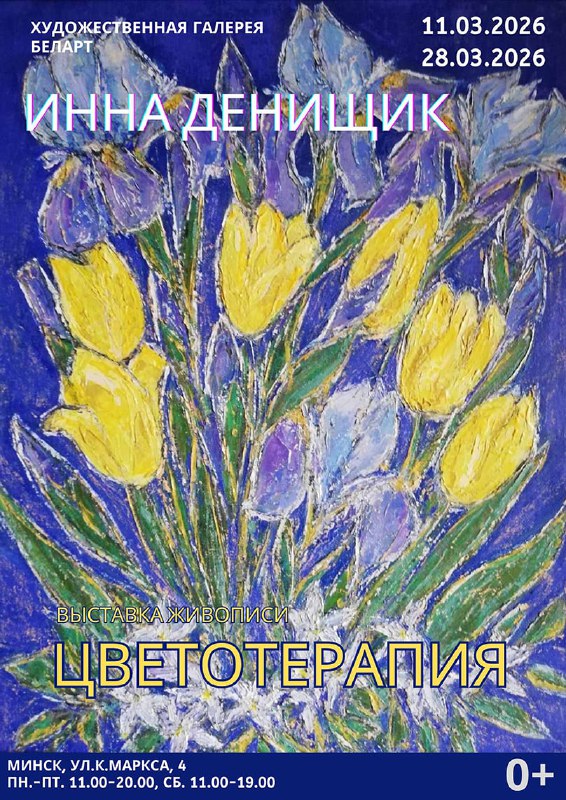 Персональная выставка живописи брестской художницы Инны Денищик «Цветотерапия» ⏰С 11 по 28 марта; открытие 11 марта (ср) в 18:00; далее пн-пт с 11:00 до 20:00; сб с 11:00 до 19:00 📍Художественная га