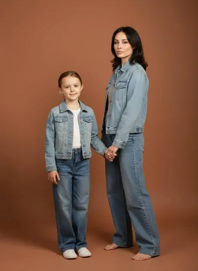 Портрет мамы и дочки Для этой фотографии лучше создать отдельные портреты на кирпичном фоне в джинсовках, а затем объединить их в одно фото. Промты для портретов будут в комментариях А это промт