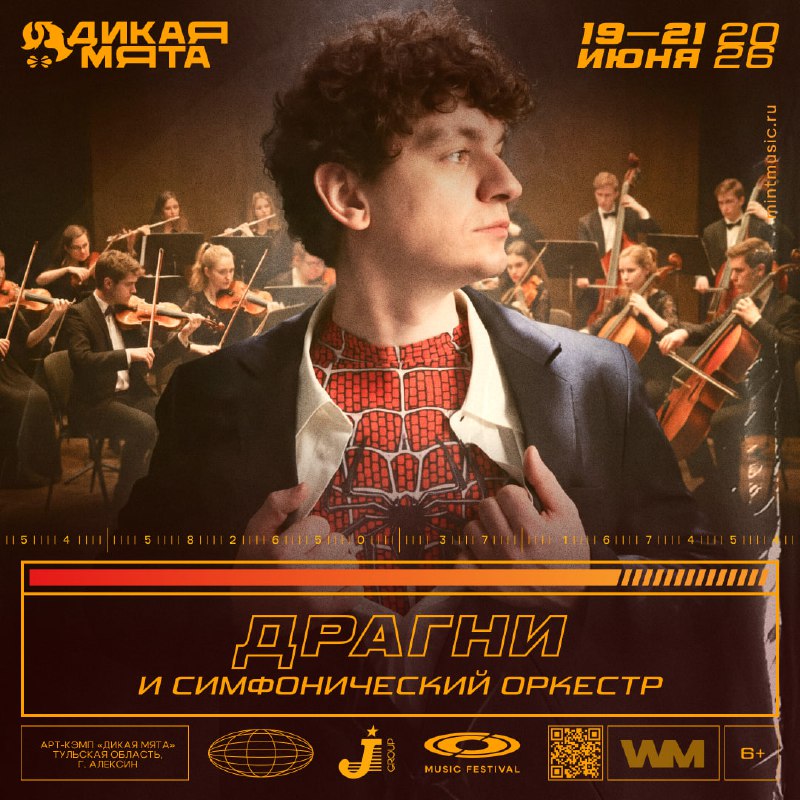 Драгни на «Дикой Мяте»! Сцену «Сирена» на «Дикой Мяте-2026» торжественно откроет Драгни в сопровождении симфонического оркестра! В этом году Драгни делает программу, к которой он и его музыканты ш