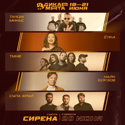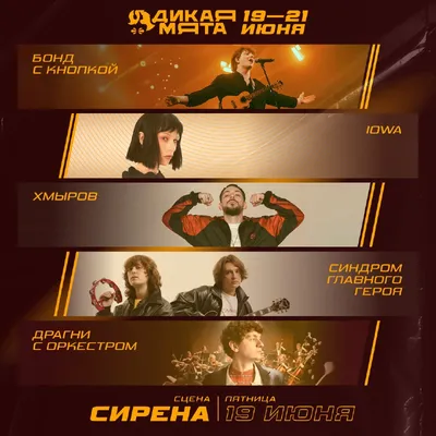 Выступления на сцене «Сирена» — в пятницу, 19 июня! Начинаем раскрывать детали музыкального расписания фестиваля «Дикая Мята-2026» — встречайте участников первого дня на сцене «Сирена»: • Драгни — т