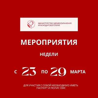 📌Неделя профилактики инфекционных заболеваний С 23 по 29 марта в Краснодарском крае пройдут мероприятия в рамках Всероссийской тематической недели, приуроченной ко Всемирному дню борьбы против тубер